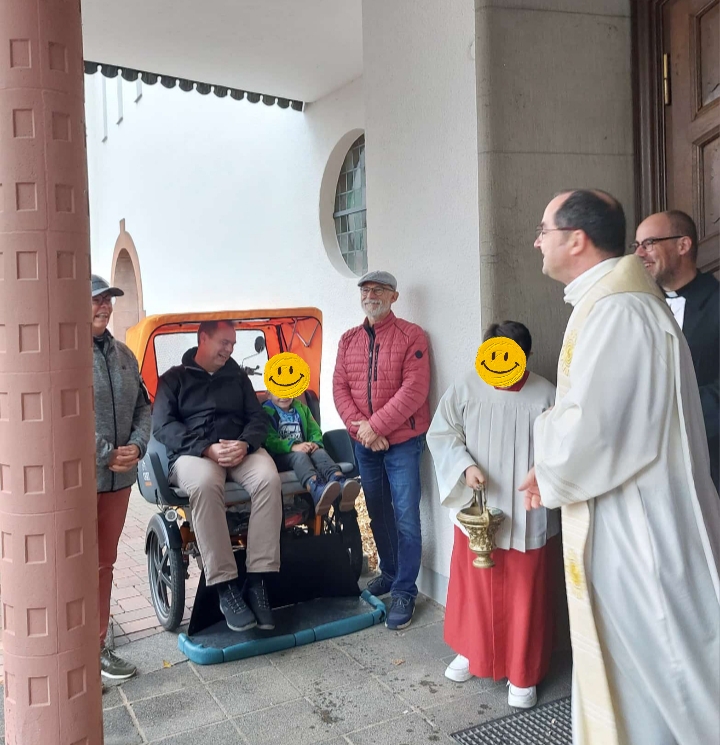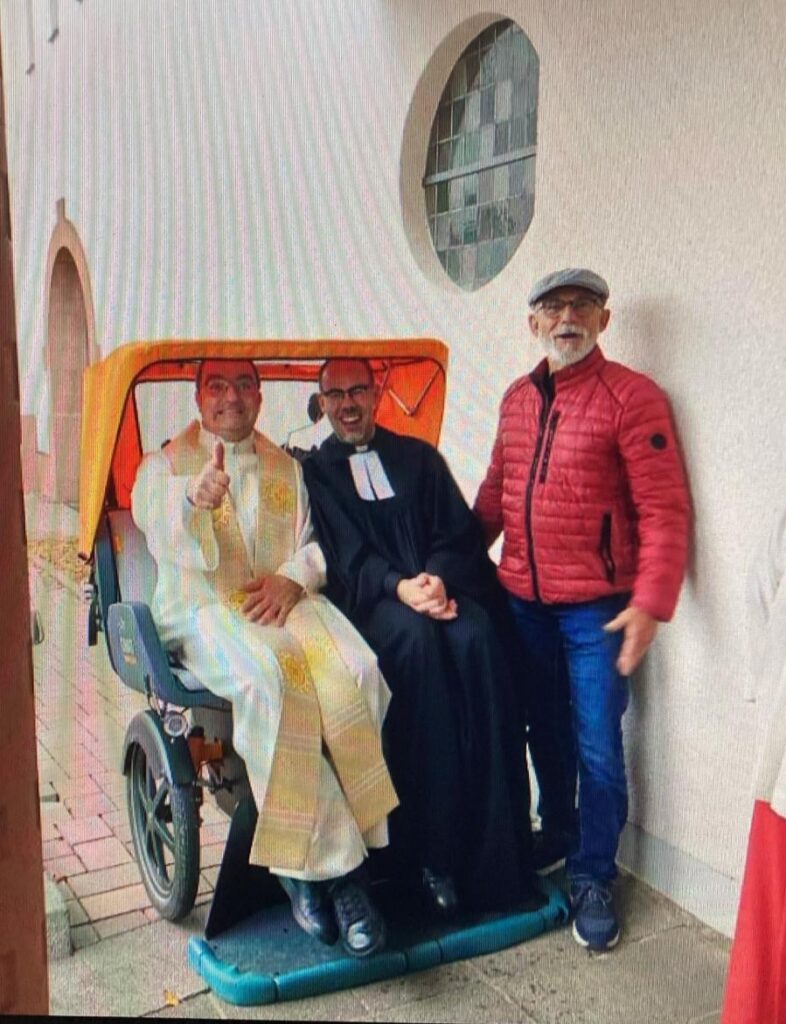 Im Rahmen des ökumenischen Bürstädter Kerwegottesdienstes in der St. Michaelskirche, wurde die Rikscha gesegnet. Pfarrer Christian Rauch und sein EV Kollege Markus Müsebeck segneten die Rikscha im Anschluß des Gottesdiensten ! Wir wünschen Allzeit eine Unfallfreie gute fahrt!